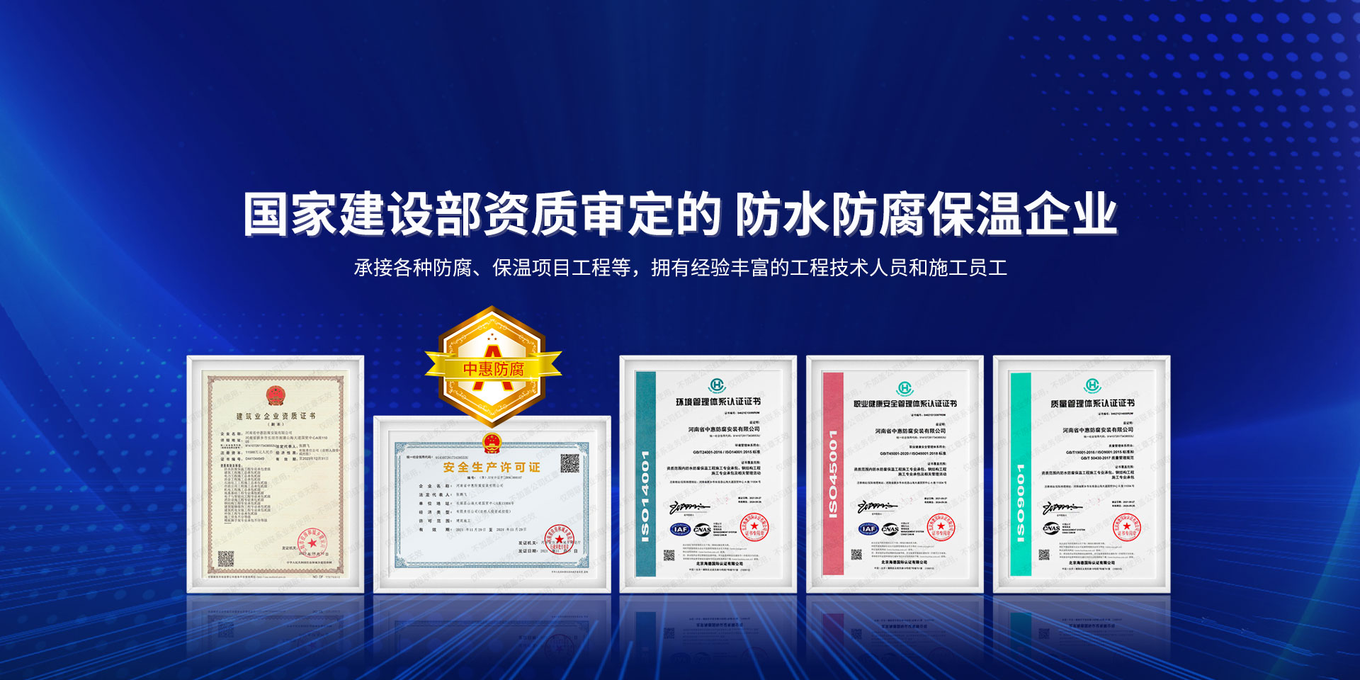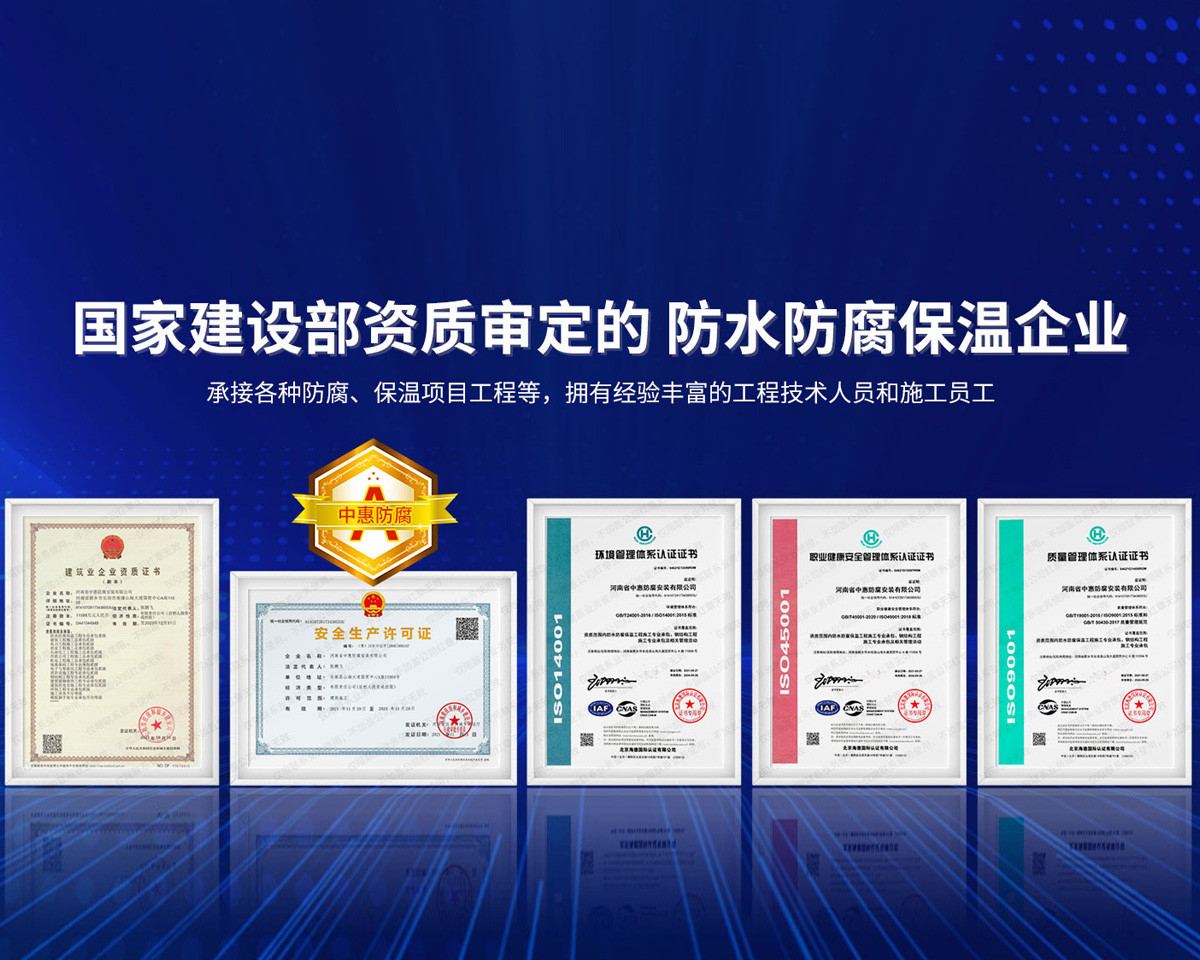 公司經營范圍:防水防腐保溫工程;消防設施工程;建筑裝修裝飾工程;建筑機電安裝工程;電力工程;建筑工程;石油化工工程;工業清洗工程;油罐清洗工程;鋼結構工程;環保工程;模板腳手架工程;電纜防火封堵、防污閃噴涂、外墻外保溫工程;各類施工勞務作業;設備維修、船舶鉚焊、涂裝;電力工程材料、建材、防水材料、防火材料、防腐保溫材料銷售,并相繼通過了GB/T19001-2008idtISO9001:2008GB/T50430-2007質量管理體系認證證書。GB/T24001-2004idtISO14001:2004環境管理體系認證證書。GB/T28001-2011idtOHSAS18001:2007職業健康安全管理體系認證證書。公司是中國防腐蝕于防護協會、中國施工企業管理協會、電力協會和中國鋼結構防水協會會員單位。 公司的經營業務涵蓋了石油、化工、電力、冶金、煤炭、船舶、國防、燃氣、水利、環保、交通運輸、航空及國防軍工和輕紡市政等行業的防腐保溫絕熱設備。鋼結構安裝、防火、防水、金屬噴鍍、聚脲噴繪、陰極保護、防滲透堵漏、玻璃鋼及各種磚版材料襯里、橡膠襯里、煙氣硫和耐酸溶劑腐蝕等工程施工。公司連續十年榮獲“省市先進施工企業”“安全生產先進單位”“重合同,守信用企業”和“AA***資質企業”的稱號。2000年被命名為市級文明單位,2002年被國家工商行政管理局命名為“重合同,守信用的企業”、被中國工業防腐蝕技術協會命名為“防腐蝕企業,能源節約及環境保護領域有豐富的經驗和***的業績。工程一次交驗合格率100%。其中攀枝花鋼鐵公司煉鐵廠四號高爐及熱風爐防腐工程、上海寶鋼公司煤氣柜防腐工程、撫順石油一廠裝置防腐項目、齊魯石化公司稀烴廠高塔防腐工程、吉林化學工業公司煉油廠油罐防腐工程、天津石化熱電廠六號爐頂棚聯絡管保溫工程、大慶油田(太倉)力神泵業工程、中國化學工程第十一建設工程、中原油田勘探局工程、中國石化銷售有限公司華北分部、魯皖輸油管道工程、貴州開磷息烽合成氨工程、陜西黃陵煤化工程、中國石油天然氣西部管道塔里木輸油工程、邯鋼集團邯寶鋼鐵公司煉鐵工程、德州供電工程、吉寶(南通)船廠工程,偃師華潤熱力工程、鄭州熱力總公司。 河南省中惠防腐安裝有限公司愿以豐富的施工經驗,***的技術,***的設備,***的管理,***的服務,竭誠為國內外廣大的用戶提供***滿意、******的工程作品。 我公司愿與國內外同仁一道,團結協作,共同推進防腐蝕行業發展! 公司地址:河南省長垣縣建設路北段360號 固定電話:0373-8866488 郵編:453400 網址:http://www_zhff_com_cn.liulizuyu.com